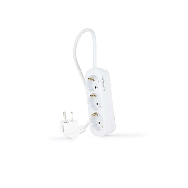 Nanocable Multipresa a 3 prese – 1,4 mnSpecifiche:n3 prese di corrente con messa a terra nProtezione bambininTensione: 250 V-50 HznMassimo 3.680 W nCertificato CE, RoHS, GS e REACHnColore: BianconDimensioni del prodotto: 160